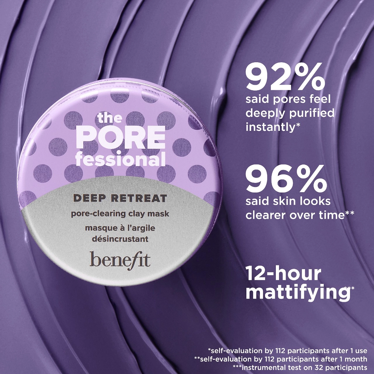 Experience the ultimate deep cleansing with Benefit Cosmetics The POREfessional Deep Retreat Pore-Clearing Kaolin Clay Mask. This smooth and creamy clay mask is formulated to visibly clarify pores and leave your skin feeling refreshed and rejuvenated. Suitable for all skin types, this mask is a must-have for anyone looking to achieve a clearer complexion.
