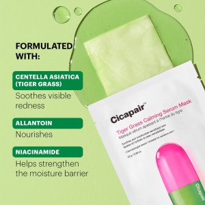Dr. Jart+ Cicapair™ Tiger Grass Redness Reducing Serum Face Mask is a must-have for anyone looking to calm irritation, reduce redness, and hydrate their skin. This sheet mask is infused with tiger grass extract and madecassoside, which work together to provide nourishment and support a strong skin barrier. Whether you have normal, dry, combination, or oily skin, this mask is suitable for you. Say goodbye to dryness, redness, and uneven texture as you indulge in the soothing power of tiger grass.