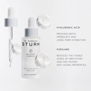 Replenish and hydrate your skin with the Dr. Barbara Sturm Mini Hyaluronic Serum. This lightweight serum is formulated with a custom blend of low and high weighted hyaluronic acid molecules to bind moisture and provide long-term hydration. Suitable for all skin types, this serum helps reduce the look of wrinkles caused by dehydration and supports skin health with the antioxidant-rich ingredient, Purslane. Achieve supple and refreshed skin with this cruelty-free and fragrance-free serum.
