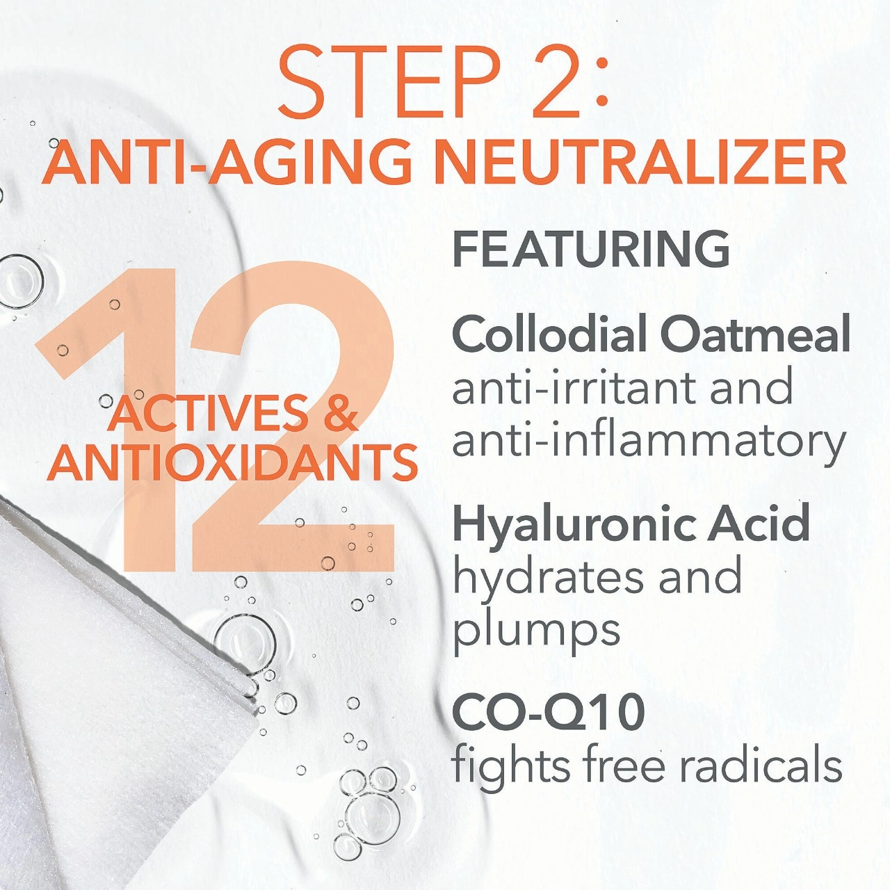 Step 2: Water/Aqua/Eau, Caprylic/Capric Triglyceride, Polysorbate 20, Sodium Bicarbonate, Sodium Hyaluronate, Colloidal Oatmeal, Camellia Sinensis Leaf Extract, Centella Asiatica Extract, Phospholipids, Adenosine, Resveratrol, Ubiquinone, Soy Isoflavones, Achillea Millefolium Extract, Leuconostoc/Radish Root Ferment Filtrate, Glycerin, Sodium PCA, Copper PCA, Zinc PCA, Butylene Glycol, Octoxynol-9, Tetrasodium EDTA, Citric Acid, Phenoxyethanol, Sodium Benzoate, Potassium Sorbate.