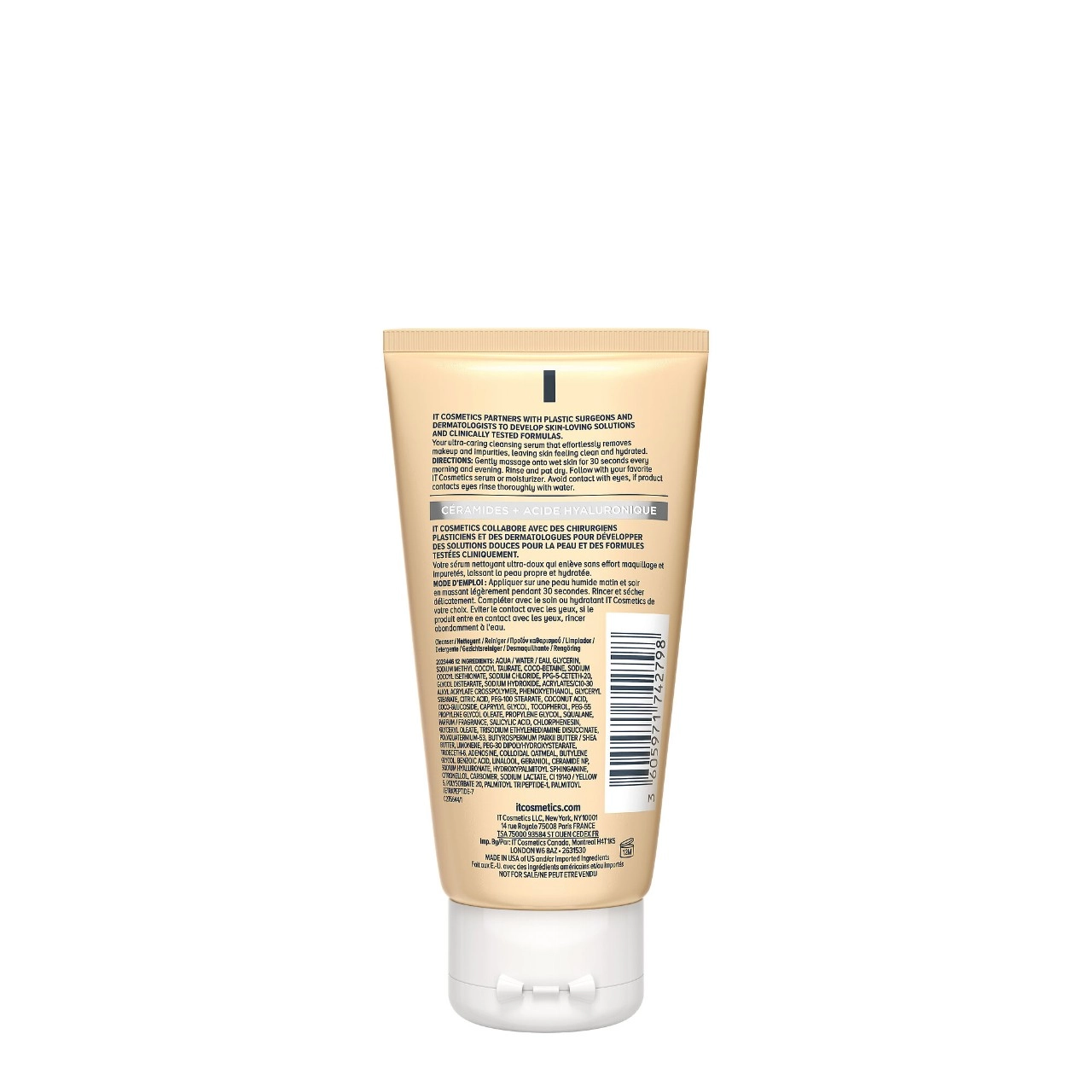 Developed with plastic surgeons, IT Cosmetics Mini Confidence in a Cleanser is a game-changing cleanser and serum in one. This sulfate-free and soap-free facial cleanser gently cleanses and moisturizes, leaving your skin feeling soft, refreshed, and perfectly balanced. It removes all traces of makeup, even waterproof eye makeup, for a completely clean feel. The formula features IT Cosmetics’ proprietary Anti-Aging Armour Rejuvenating Concentrate, which helps rejuvenate the skin and restore moisture. With anti-aging collagen, hyaluronic acid, colloidal oatmeal, and a super ceramide complex, this cleanser works over time to deliver dramatic results.