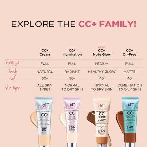- Apply one to two pumps of this tinted moisturizer to clean skin using IT Cosmetics’ Heavenly Skin™ CC+™ Skin Perfecting Brush #702 (sold separately).