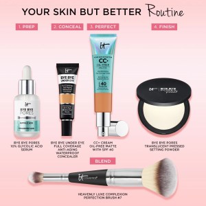 - Pair with IT Cosmetics’ Your Skin But Better Makeup Primer and CC+ Airbrush Perfecting Powder (each sold separately) for a long-lasting, full-coverage makeup look.