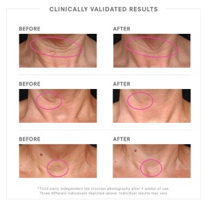 For best results, apply the cream to cleansed neck and décolleté. Gently massage in an upward sweeping motion toward the chin and jawline, both morning and night.