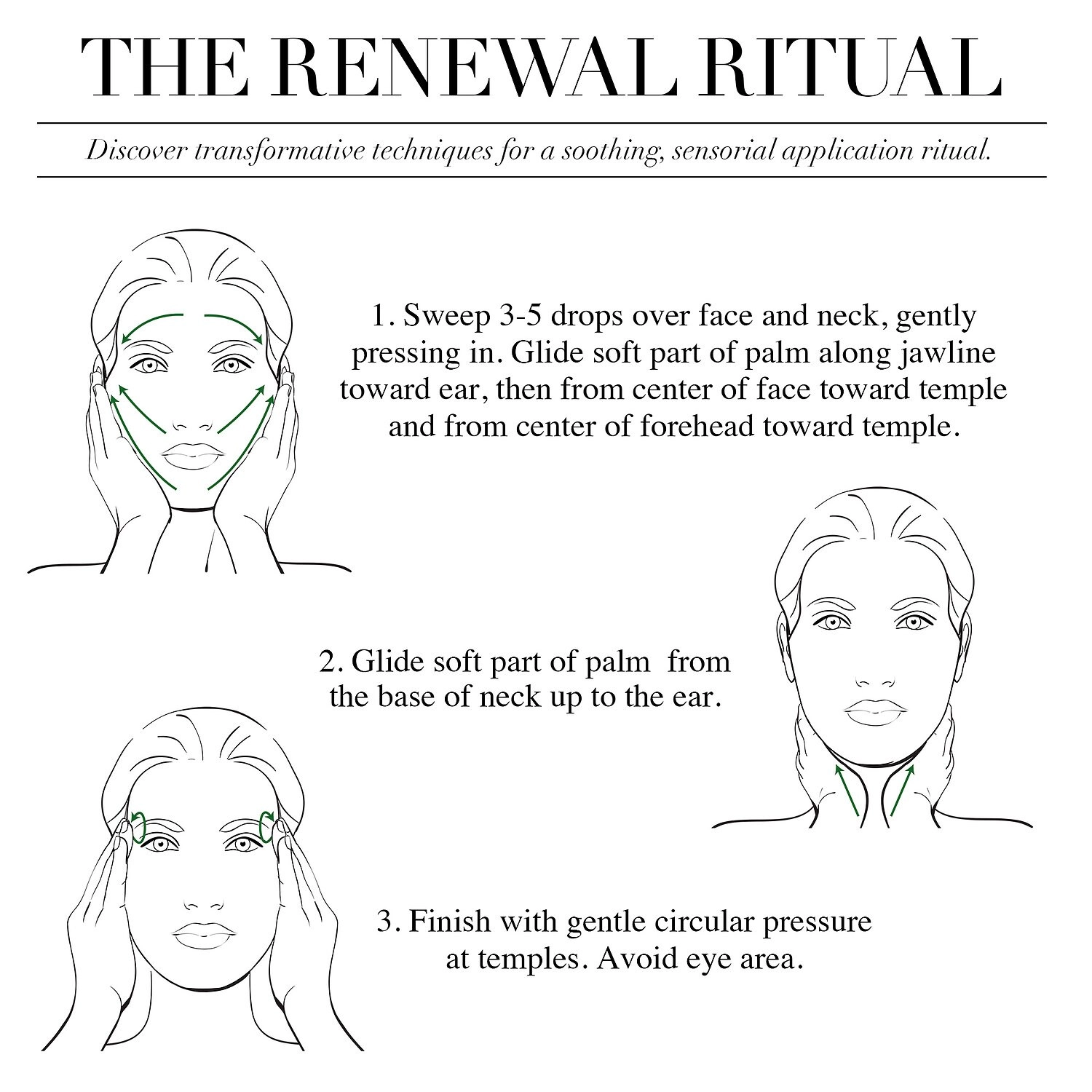 To use the La Mer The Renewal Oil, gently shake the bottle to blend the formula. Then, sweep three to five drops over your face and neck in the morning and evening. Follow with your La Mer regimen for optimal results. You can also massage this nurturing formula into your hair, cuticles, and dry areas of the body as needed.