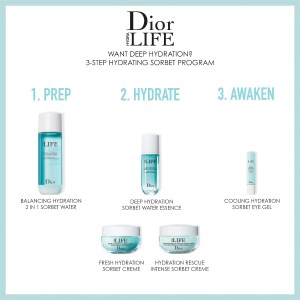 For optimal results, apply Dior Hydra Life Balancing Hydration 2 in 1 Sorbet Water as a preparation step in your skincare routine. Shake before use and apply to cleansed skin using your hands or a cotton pad. Use daily, both in the morning and at night, to maintain hydrated and balanced skin.