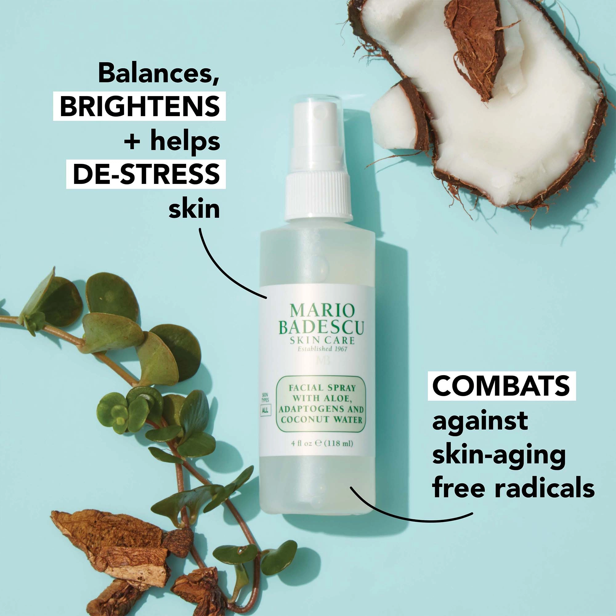 Revitalize your skin with the Mario Badescu Facial Spray. This refreshing mist is formulated with aloe, adaptogens, and coconut water to nurture and hydrate your skin. Whether you have normal, dry, combination, or oily skin, this spray is perfect for you. It targets dryness and dullness, leaving your skin feeling refreshed and rejuvenated.