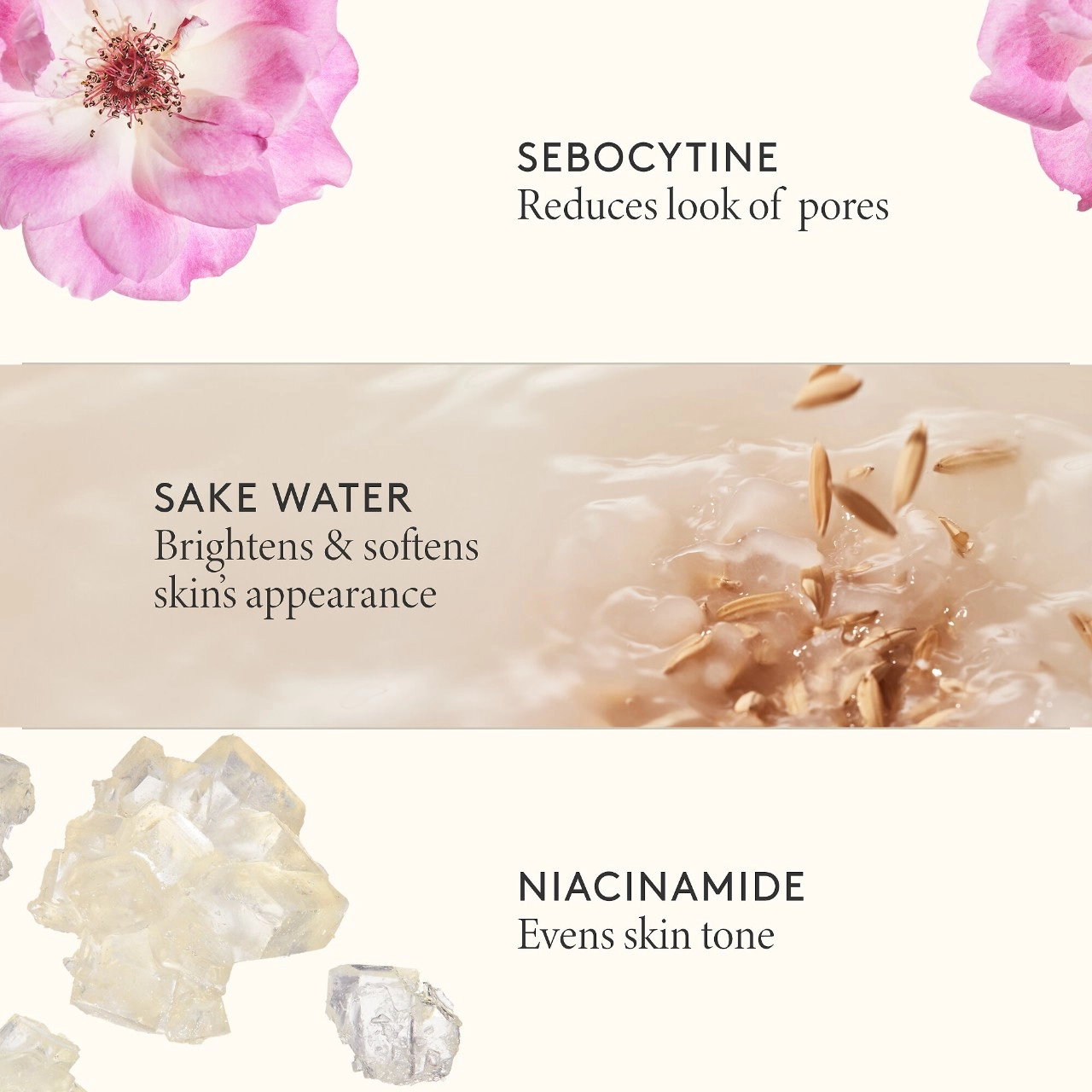 Aqua (Water, Eau), Saccharomyces Ferment Filtrate, Glycerin, Rosa Cannina Fruit Extract, Butylene Glycol, Niacinamide, Phenoxyethanol, Isoceteth-20, Xanthan Gum, Aminopropyl Ascorbyl Phosphate, Tetrasodium Glutamate Diacetate, Tocopheryl Acetate (Vitamin E), Natural Fragrance, Camellia Sinensis (Green Tea) Japanese, Ethylhexylglycerin, Citric Acid.