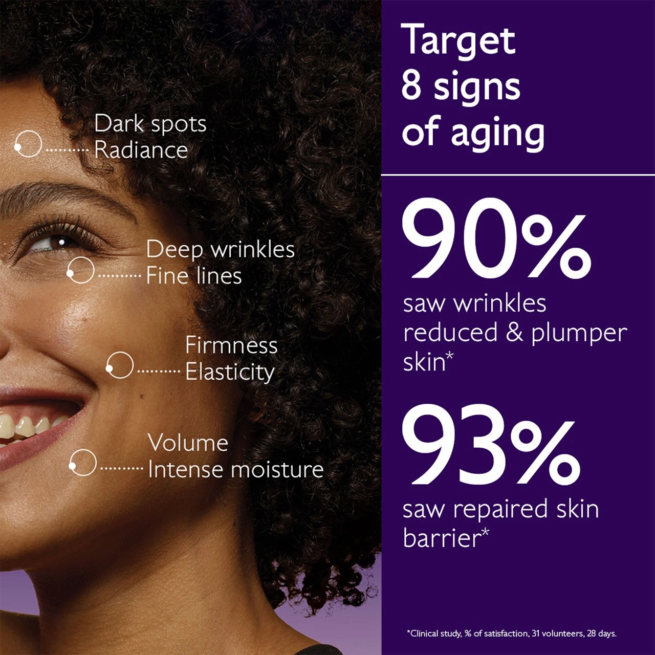 - Targets the eight signs of aging