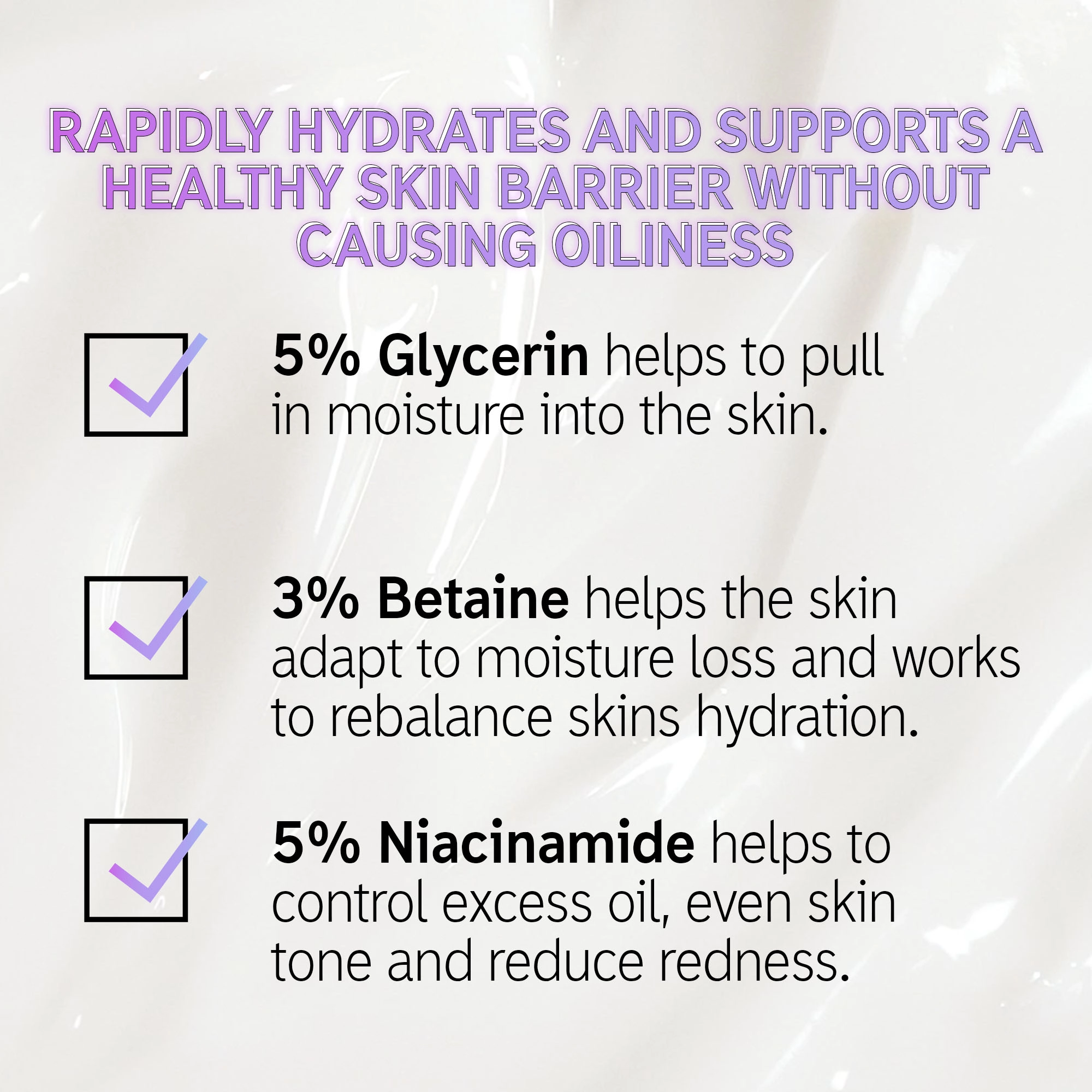 - Niacinamide 5%: Visibly reduces excess oil and evens skin tone.