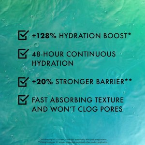 What sets this moisturizer apart is its ability to provide up to 48 hours of continuous hydration, defending your skin against the effects of seasonal changes, long flights, and lack of sleep. In clinical testing, it was found to boost moisture by 128% and fortify the skin for a healthier appearance.