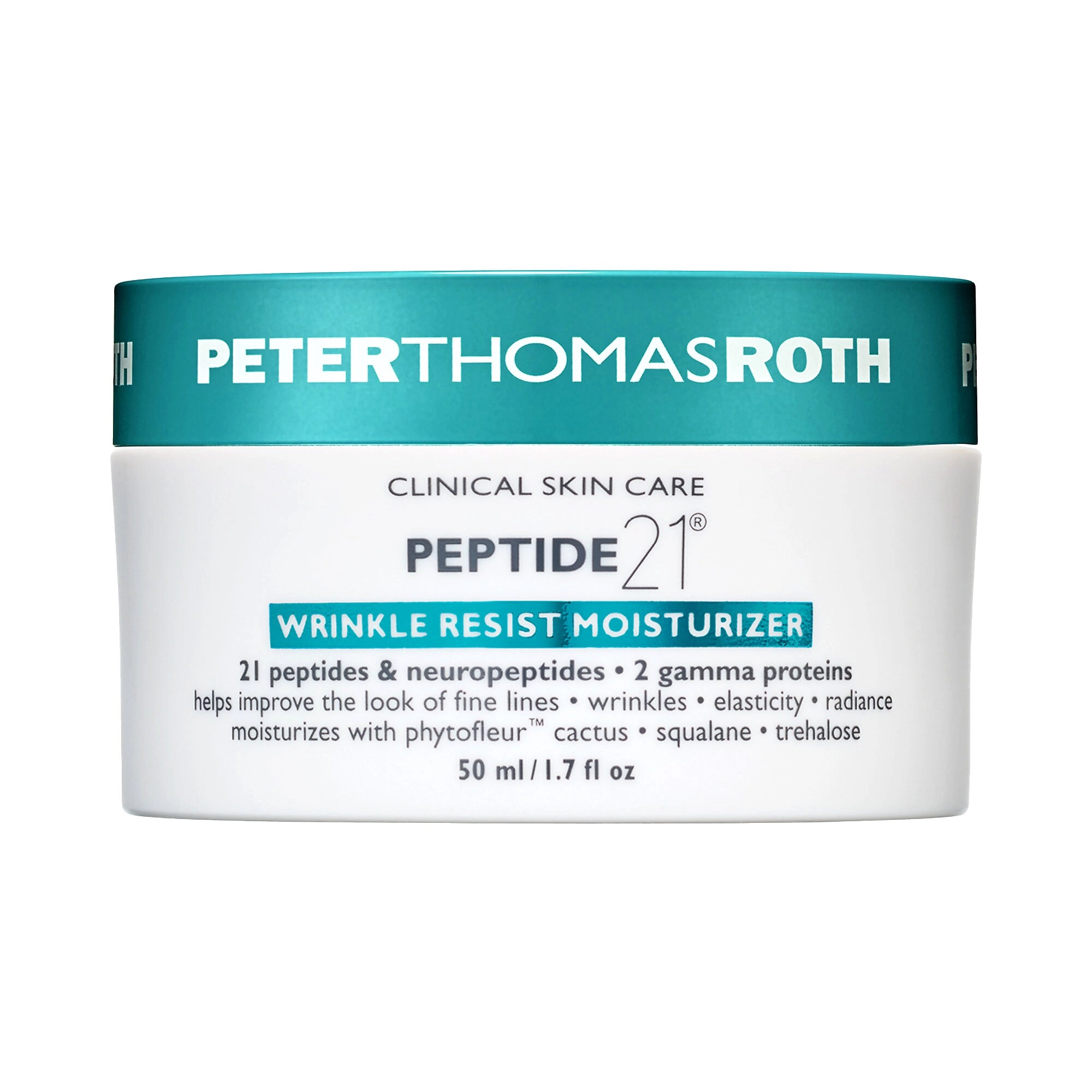Experience the power of peptides with the Peter Thomas Roth Peptide 21® Wrinkle Resist Moisturizer. This lightweight yet intensely hydrating cream is formulated with a complex of 21 peptides and neuropeptides, along with two gamma proteins, to combat the signs of aging and deliver a youthful, radiant complexion.