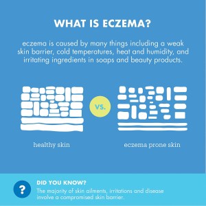 – Colloidal Oatmeal 5%: Temporarily protects and helps relieve minor skin irritations and itching due to eczema, rash, and dermatitis