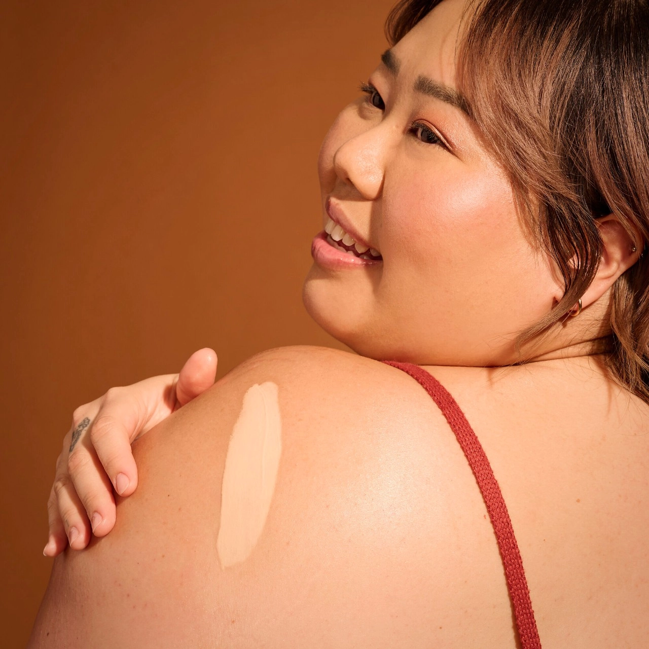 - Pearlescent and lightweight body sunscreen