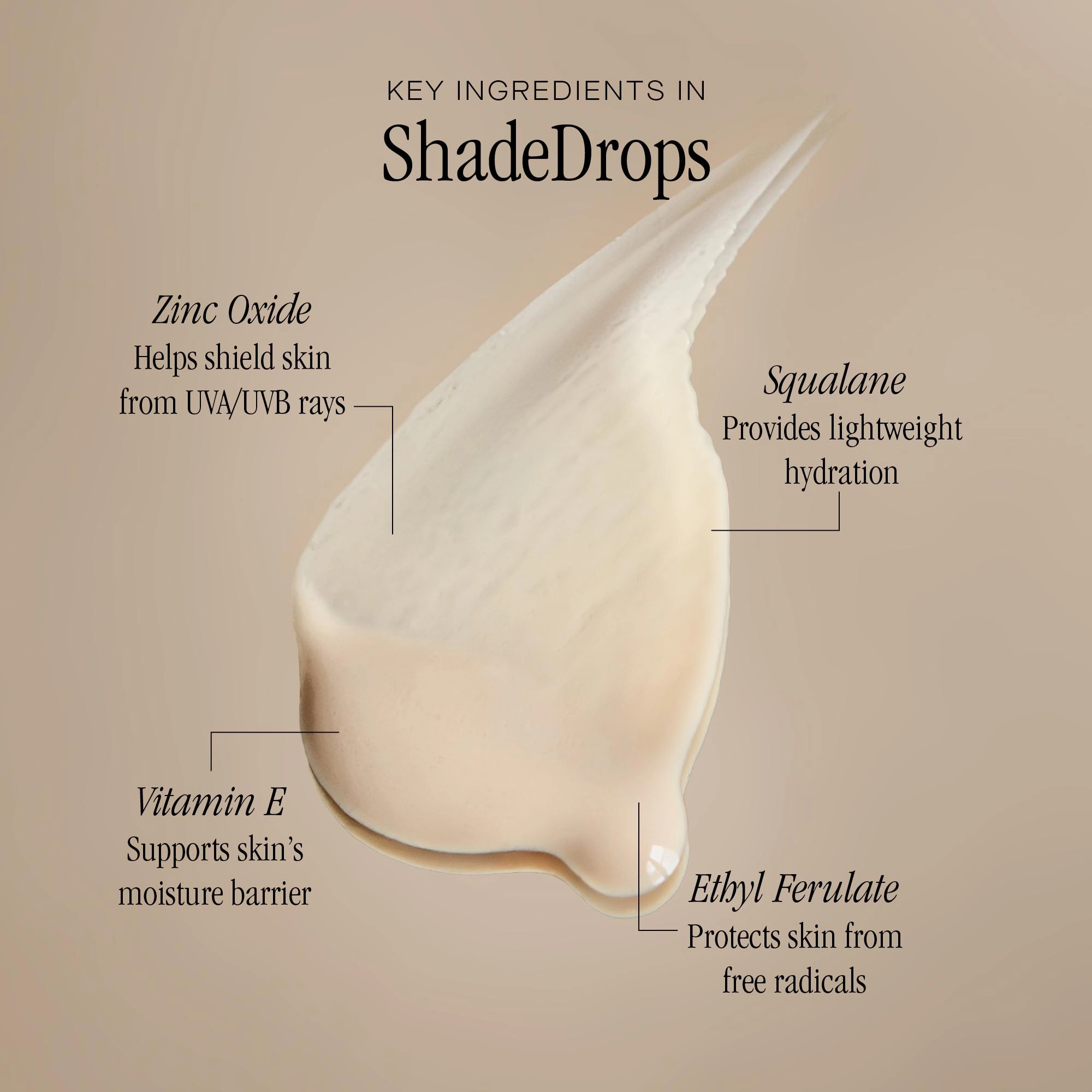 This mineral sunscreen is formulated with zinc oxide to shield your skin from damaging UV rays. Squalane leaves your skin appearing softer, smoother, and plumped up, while the antioxidant complex of vitamin E and ethyl ferulate helps protect your skin against free-radical damage. The full list of ingredients can be found in the Ingredients tab.