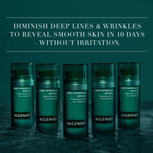 Experience the power of Algenist Green Microalgae Retinol + Regenerating Serum. This lightweight serum is formulated with patented Alguronic Acid® to minimize the look of lines and wrinkles while boosting the efficacy of other ingredients. The combination of Green Microalgae Bio-Retinol and Time-Release Retinol visibly reduces deep wrinkles and smooths skin’s texture without irritation. AHA, BHA, and PHA resurface skin and improve bio-retinol and retinol delivery for maximum results.