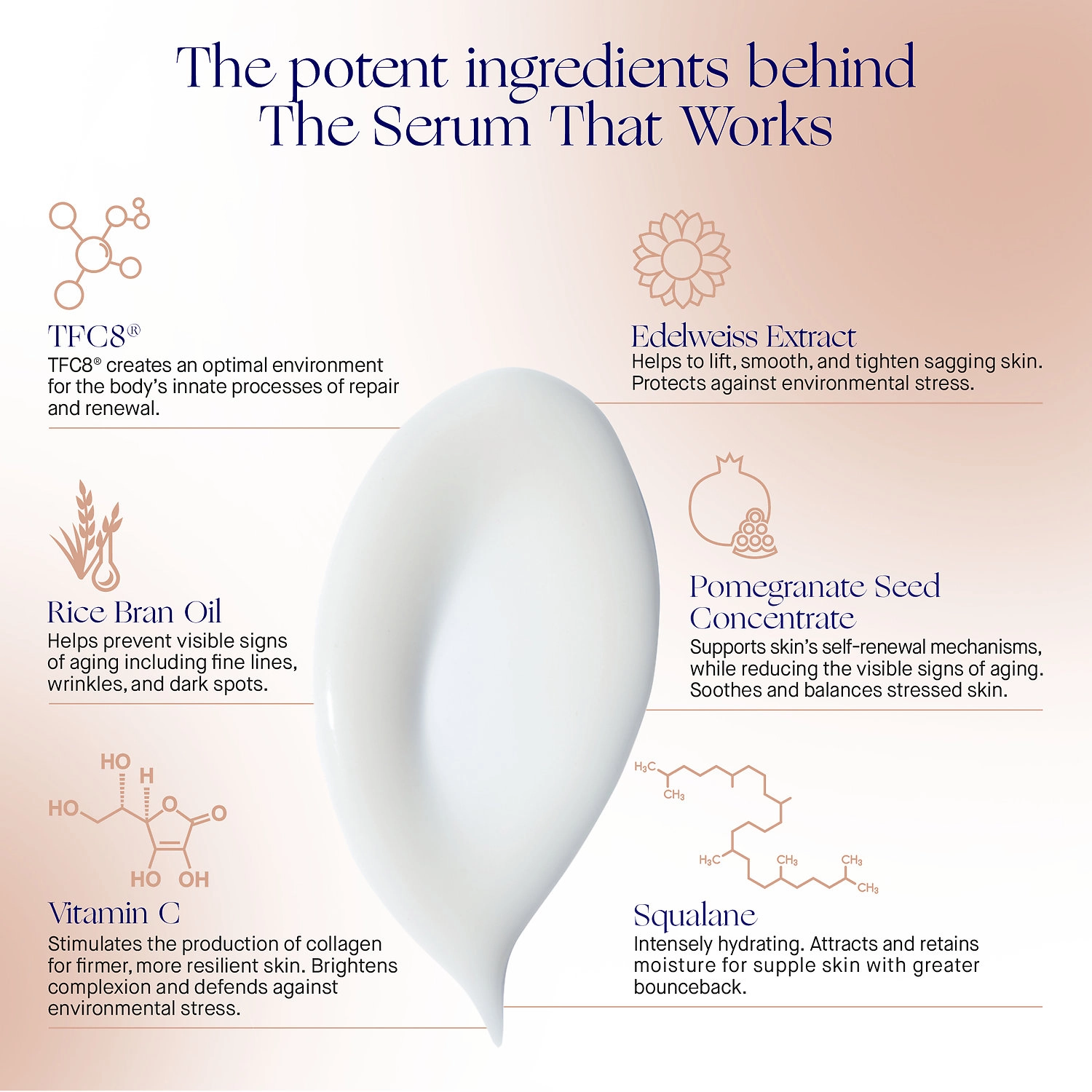 - TFC8®: Nourishes and protects the skin, supporting cellular renewal.