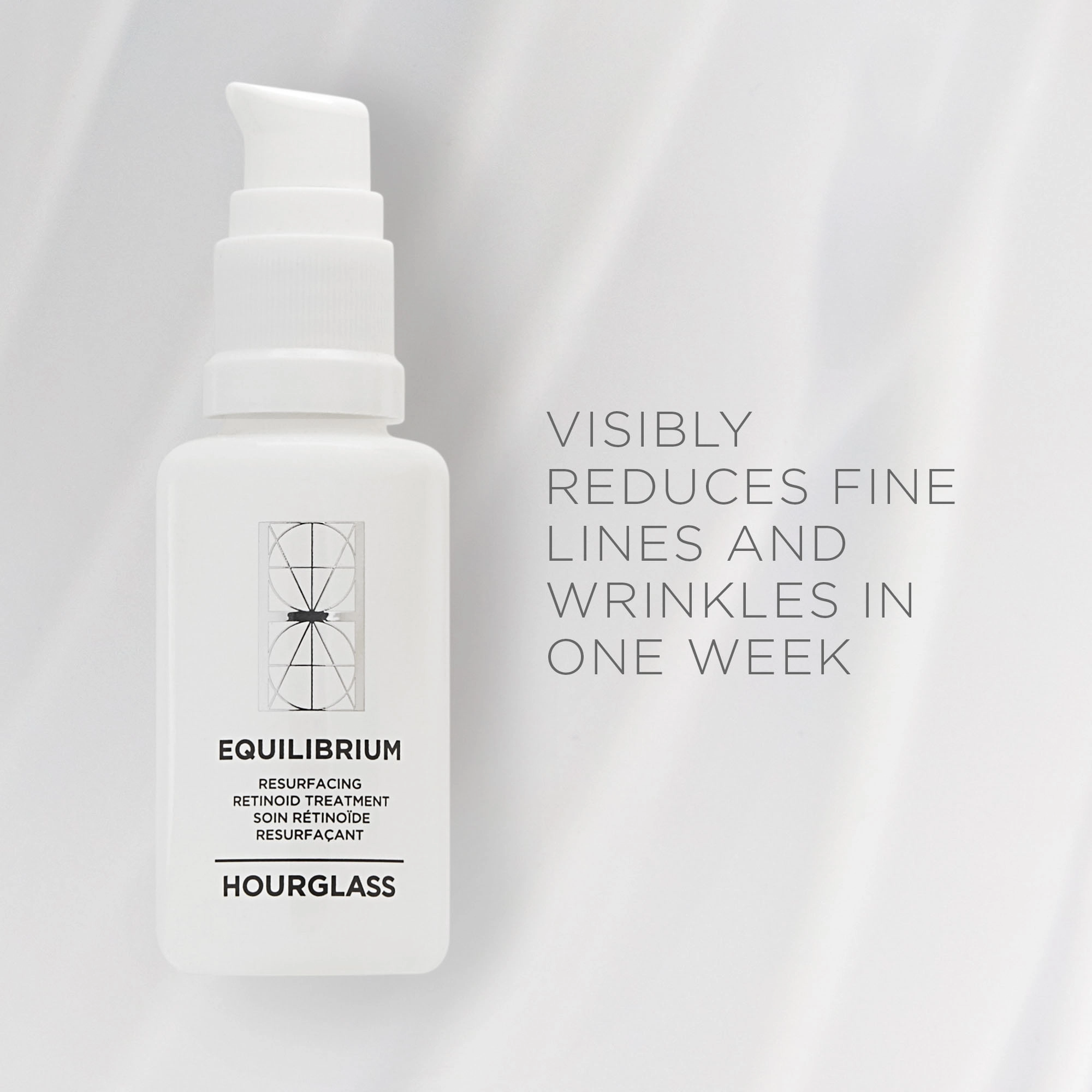 To use the Hourglass Equilibrium Resurfacing Retinoid Treatment, apply two pumps of the product onto clean, dry skin. Gently massage it in until fully absorbed. This treatment is gentle enough for both morning and evening use. For optimal results, follow with SPF in the morning to protect your skin from sun damage.