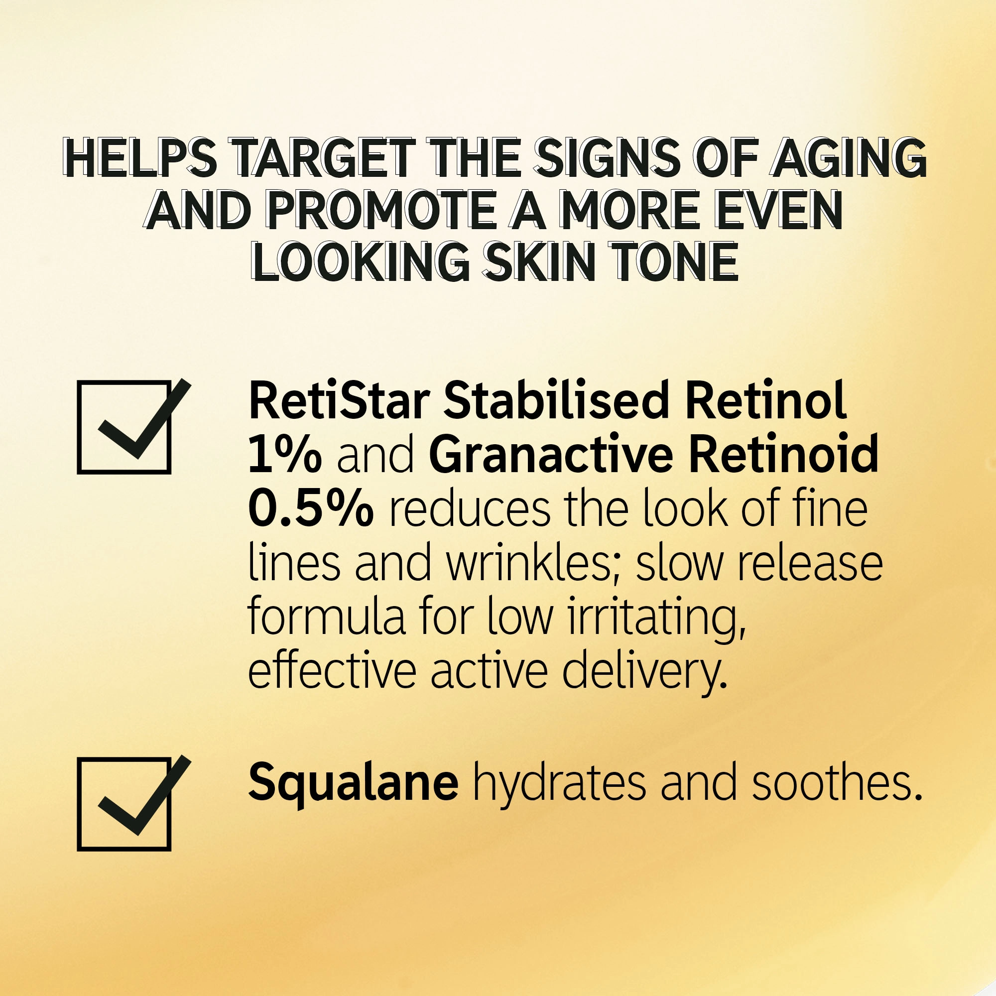 Experience the transformative power of the INKEY List Retinol Fine Lines and Wrinkles Serum. This powerful retinol serum is formulated with RetiStar Stabilised Retinol 1% and Granactive Retinoid 0.5% to reduce the appearance of fine lines and wrinkles. Its slow-release formula ensures effective active delivery with minimal irritation.
