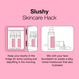 SLUSHY hacks: 1) Use as a hydrating & smoothing primer before foundation or tinted moisturizer application. 2) Keep in the fridge for extra cooling & refreshing benefits. 3) Mix with your favorite foundation for a perfect, silky tinted moisturizer.