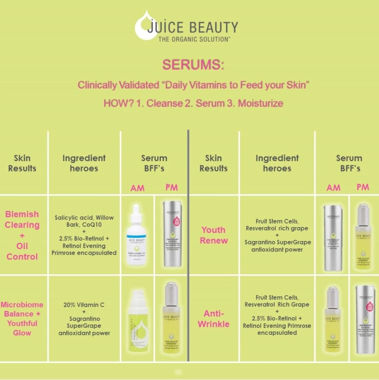 <p>For best results, apply the Juice Beauty Stem Cellular SUPERGRAPE Youth Renew Serum generously day or night to cleansed face, neck, and décolleté. Use the dropper to deliver a measured dose for one full face application. 2-3 dropper fills will cover your face, neck, and décolleté. For optimal benefits, pair with your favorite Juice Beauty Serum BFF. Follow with Juice Beauty's Eye and Facial Moisturizers for a complete skincare routine.</p>
