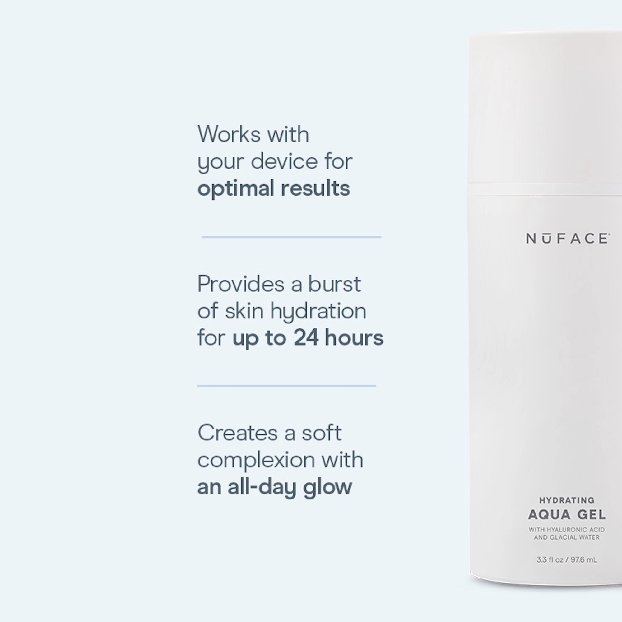 Experience the ultimate hydration with NuFACE Hydrating Aqua Gel. This lightweight serum gel is designed to deliver microcurrent from your device to the facial muscles while leaving your skin hydrated for up to 24 hours. Formulated with Hyaluronic Acid, it attracts and holds up to 1,000 times its weight in water, helping your skin appear plump, smooth, and hydrated.