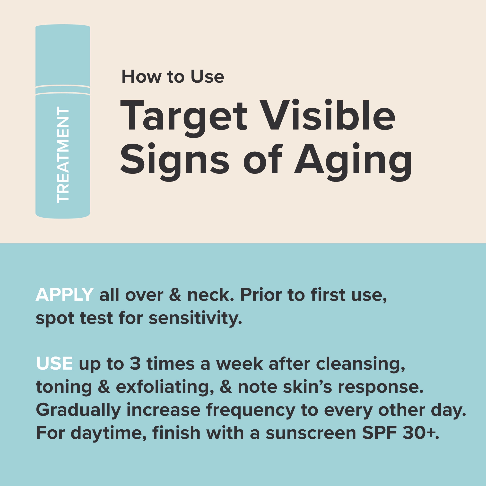 Please note: Some people may experience a delayed sensitized reaction to one percent retinol. Pay close attention to how your skin responds and adjust usage accordingly. If sensitization occurs, reduce frequency of use. If sensitization persists, discontinue use.