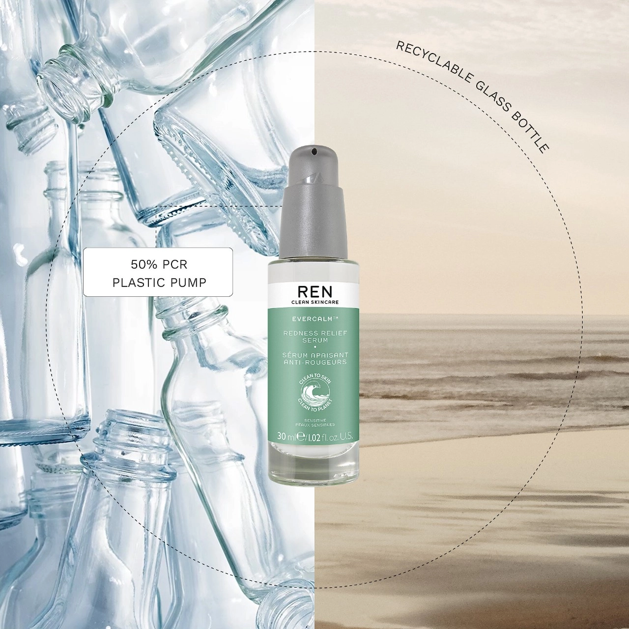 Reduce redness and soothe sensitive skin with REN Clean Skincare Evercalm™ Redness Relief Serum. This fast-acting serum is clinically demonstrated to visibly reduce redness in just 30 minutes. Formulated with bioactive ingredients, it relieves discomfort and calms the skin. Suitable for all skin types, this serum is vegan and comes in recyclable packaging.