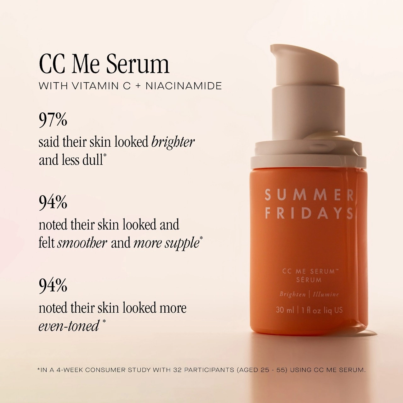 To use the Summer Fridays CC Me Vitamin C + Niacinamide Serum, start with cleansed, dry skin. Apply the serum to your face and neck, avoiding the eye area. Follow with your favorite moisturizer and SPF for added protection. Incorporate this serum into your daily skincare routine for best results.