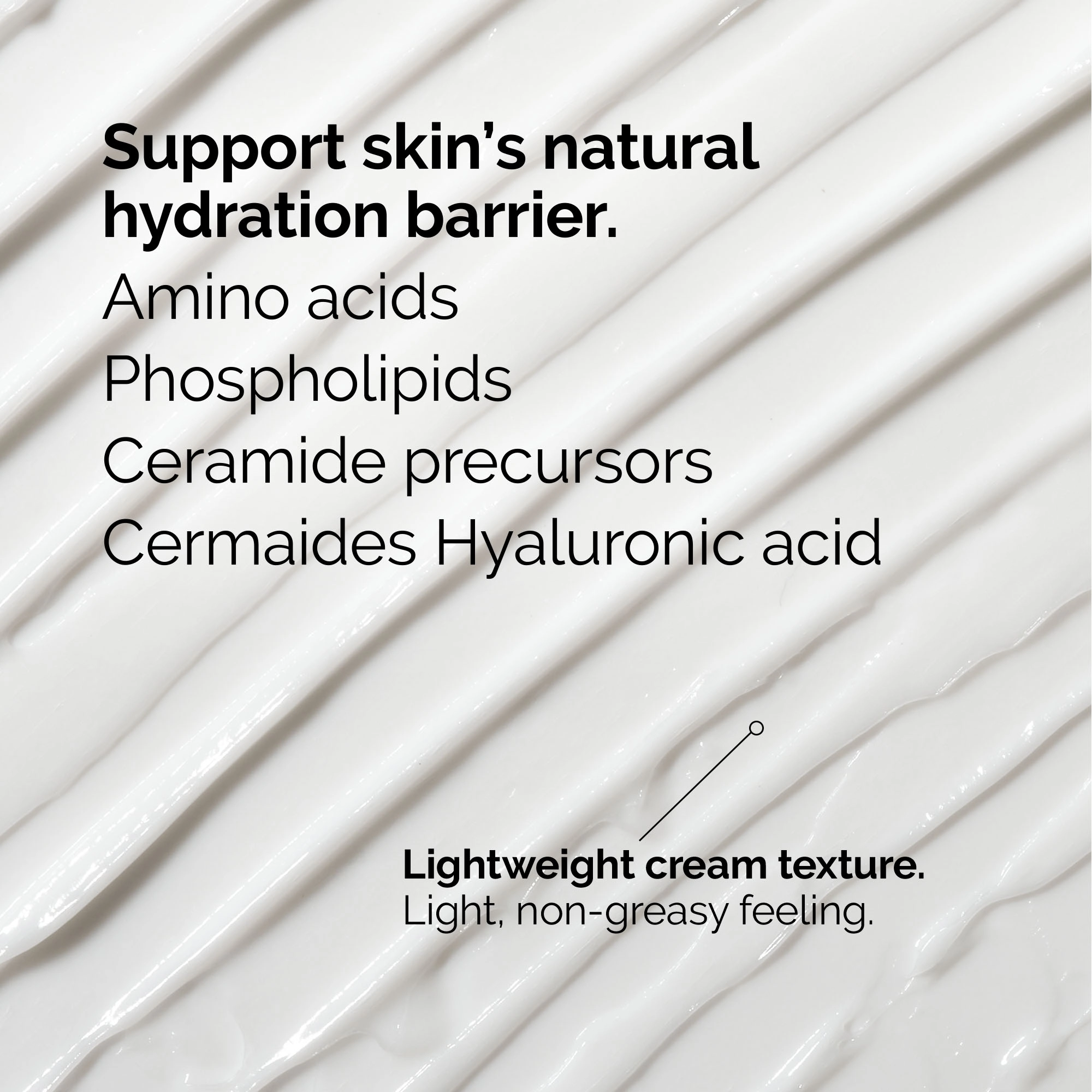 For effective hydration, apply all over the face after serums as needed. The dermal lipids in this formula act as a direct topical supplement to protect and hydrate the outer layer of the skin. The combination of urea, allantoin, sodium PCA, glycerin, and 11 amino acids provides intense lightweight hydration and comfort. Plant-derived saccharides support dermal water density, while hyaluronic acid acts as an enhanced hydrating delivery system.