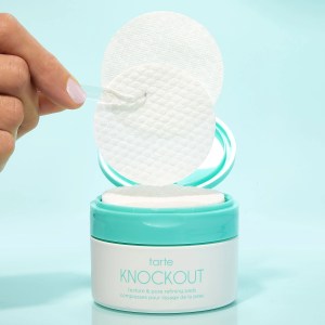 Experience the power of Tarte Knockout Texture & Pore Refining Pads. These 30 pads are your secret weapon for achieving baby-soft skin. With a textured side for gentle exfoliation and a smoothing-serum side, these pads work wonders on uneven texture and pores. They are formulated with BHAs, amino acids, and vitamin B5 to visibly minimize fine lines, wrinkles, and cleanse your pores. Say goodbye to dull skin and hello to a refined complexion.