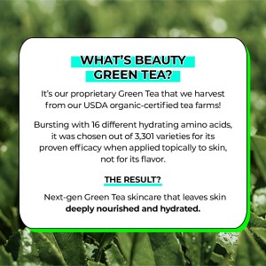 - Green Tea Tri-Biotics™: Nourish and fortify your skin’s moisture barrier, creating a shield of resilience.