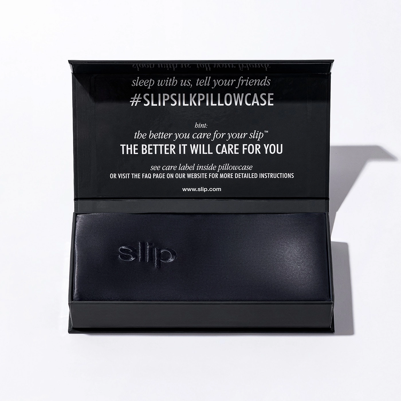 For maximum results, use the Slip Silk Pillowcase for up to eight hours daily. It is recommended to machine-wash the pillowcase on a cool/delicate cycle using a pH-neutral liquid detergent and/or fabric softener. To protect the silk, use a delicates wash bag. Avoid bleaching and tumble-drying. Instead, line-dry the pillowcase in the shade and iron or steam on low heat.