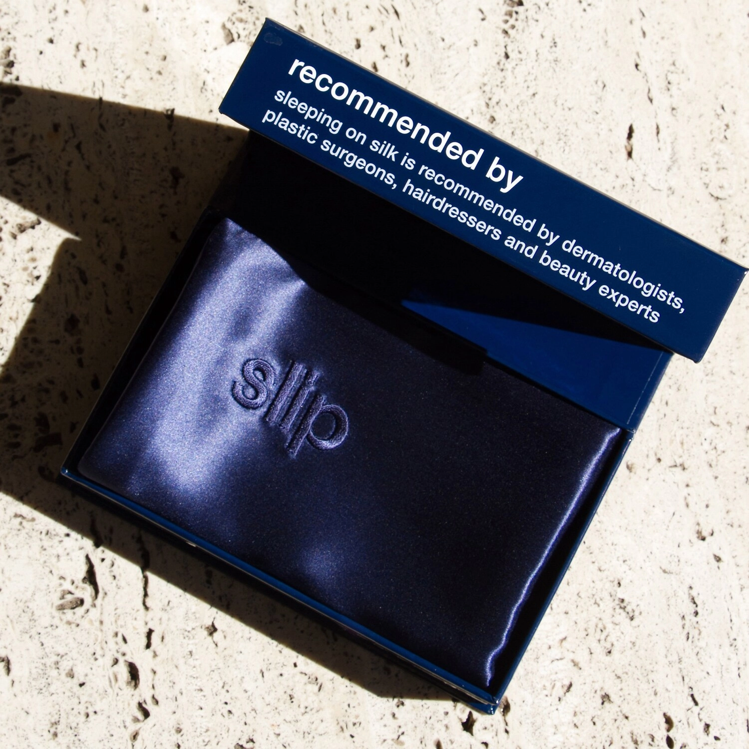 Made of the highest-grade mulberry silk, Slip Silk Pillowcase is crafted with slipsilk™ technology. This specially developed silk fabric absorbs significantly less face cream than cotton pillowcases*, helping to maintain your skin’s moisture and keep valuable face and hair products where they belong: on your face and hair.