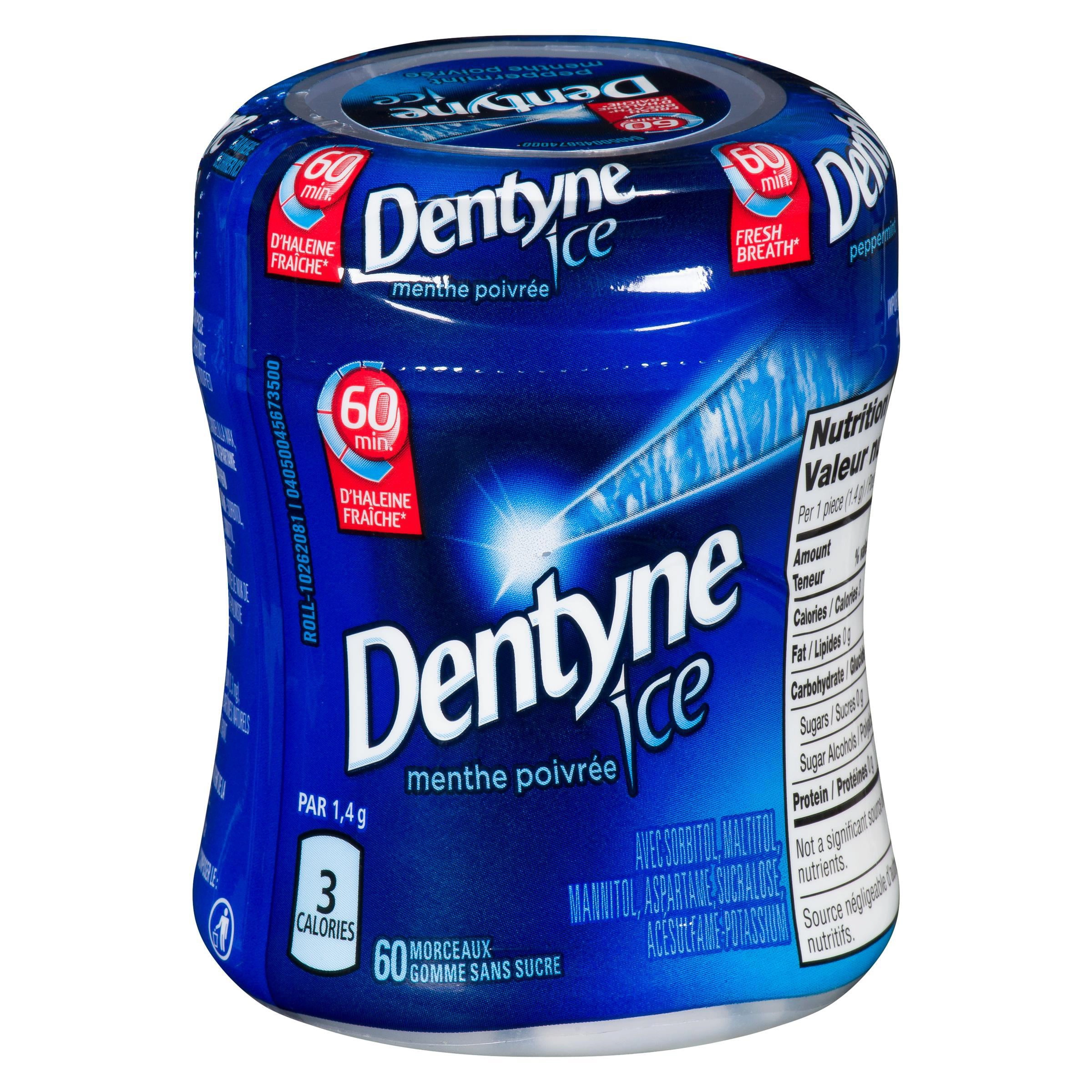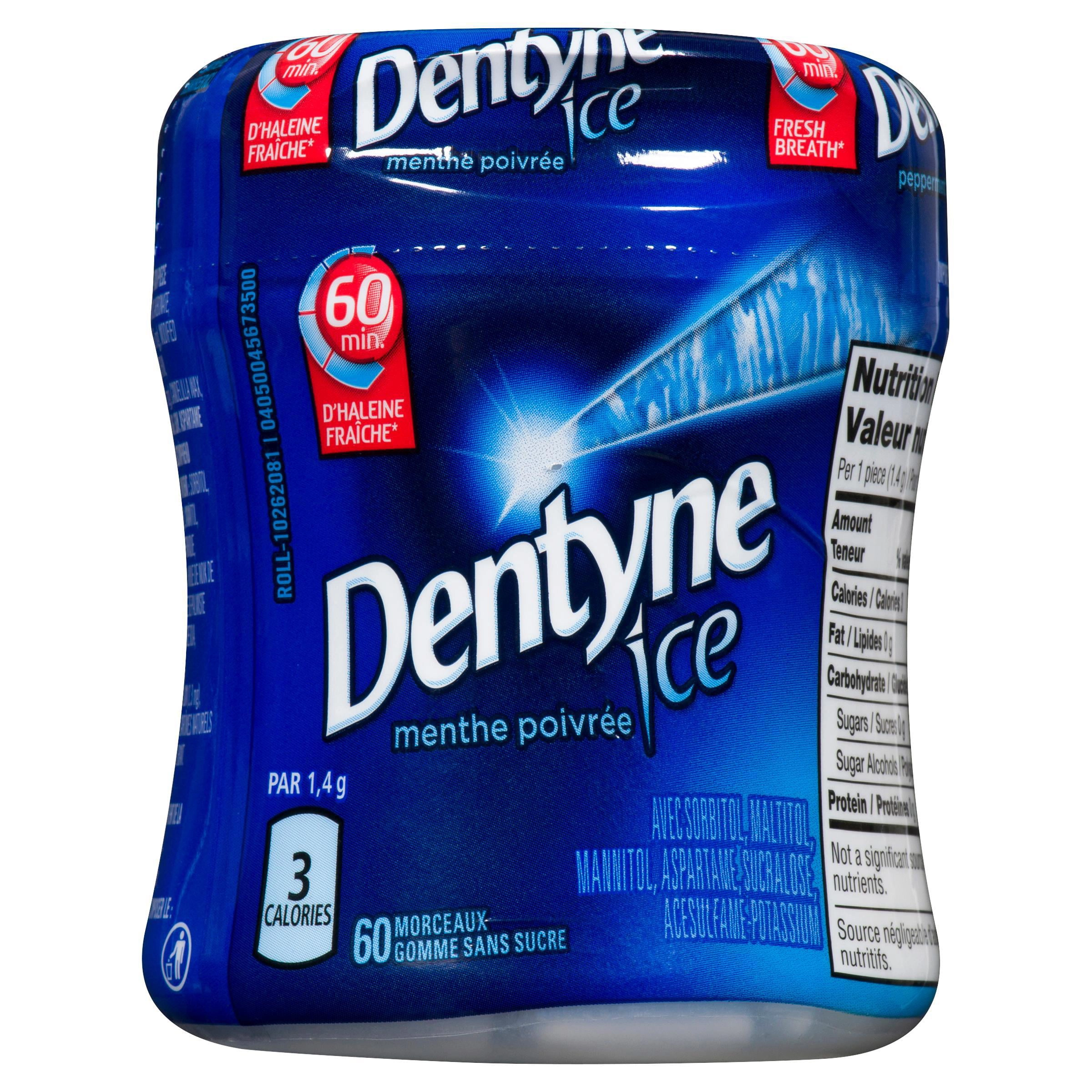 - With 35% fewer calories than sugared gum, Dentyne Ice is the smart way to stay fresh and confident in the situations that life brings to you.