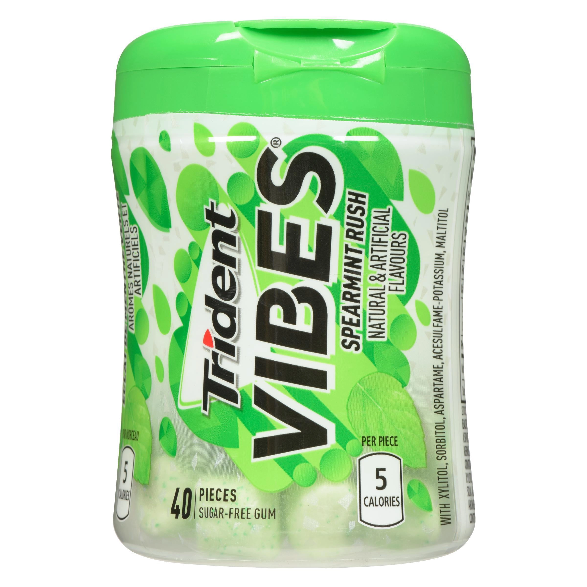 Experience the burst of spearmint flavor and the long-lasting freshness of Trident Vibes Sugar Free Gum. Order your go-cup today and enjoy the ultimate chewing experience.