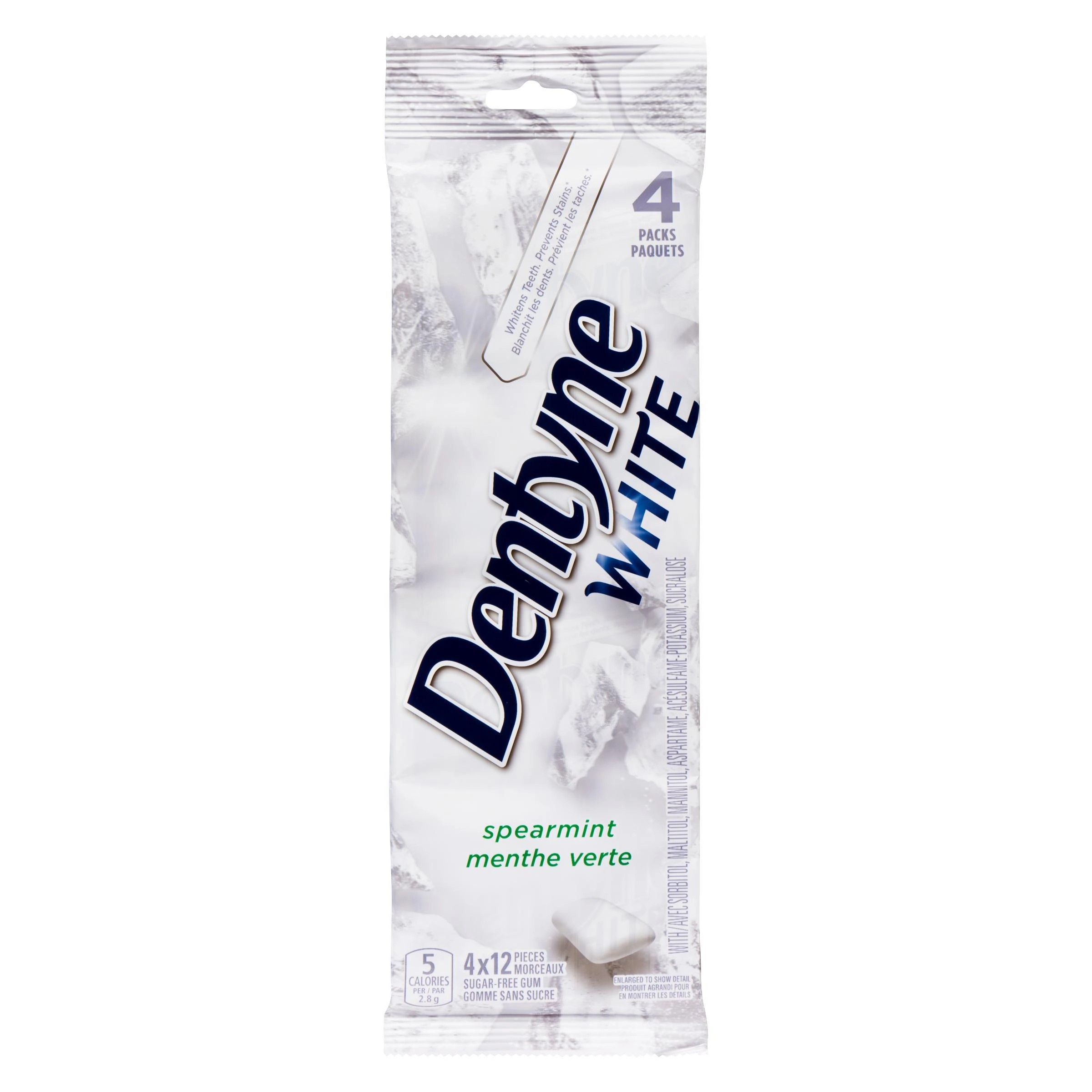 Stay confident and fresh throughout your day with Dentyne White Spearmint Sugar-Free Gum. This multipack includes 4 individually wrapped packs, each containing 12 pieces of gum, for a total of 48 pieces.