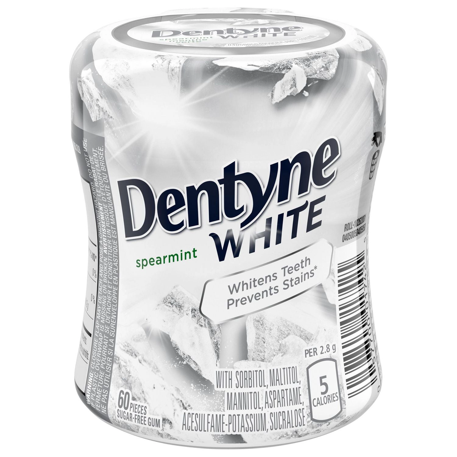 Experience the refreshing taste and teeth-whitening power of Dentyne White Spearmint Sugar-Free Gum. With its unique formula, this gum helps remove and prevent stains, giving you a brighter smile with every chew.
