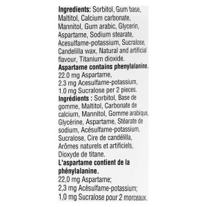 Contains phenylalanine. Each 2 pieces of gum contain 22.0 mg of aspartame, 2.3 mg of acesulfame-potassium, and 1.0 mg of sucralose.