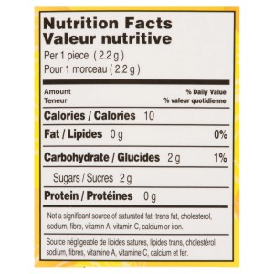 | Ingredients | Sugar, Dextrose, Corn Syrup, Gum Base, Gum Arabic, Tapioca Dextrin, Titanium Dioxide, Shellac, Carnauba Wax, Artificial Flavor, Color (contains Tartrazine), Corn Starch, BHT (to maintain freshness). May contain: Soy. |