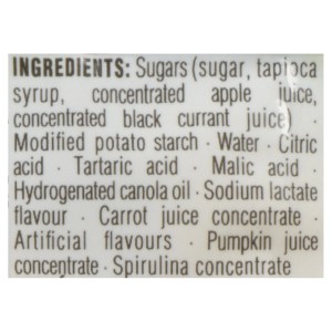 - Sugars (sugar, tapioca syrup, concentrated apple juice, concentrated black currant juice)