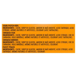- Includes SOUR PATCH KIDS, FUZZY PEACH, SWEDISH BERRIES, and SWEDISH FISH