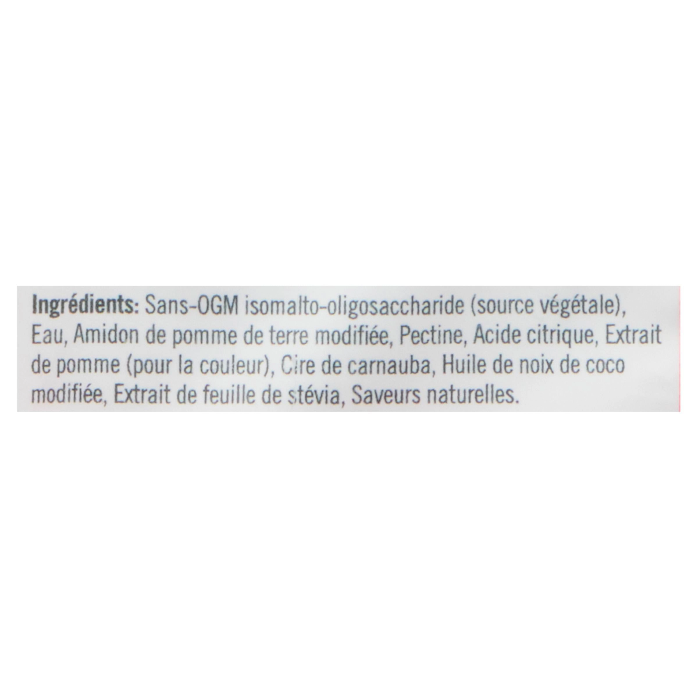 | Nutrition Facts | Ingredients: Non-GMO isomalto-oligosaccharides (vegetable source), Water, Modified potato starch, Pectin, Citric acid, Apple extract (for colour), Carnauba wax, Modified coconut oil, Stevia leaf extract, Natural flavours |