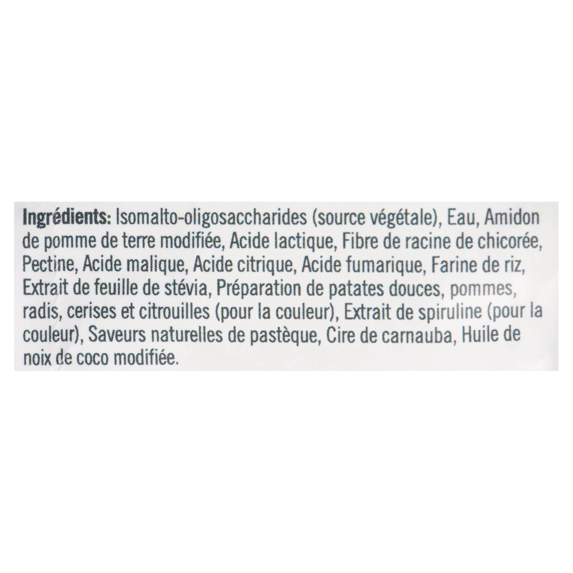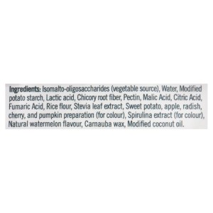 Each 50g pouch of SmartSweets Sourmelon Bites is packed with flavor and nutrition. The gummies are made with isomalto-oligosaccharides, a vegetable source of fiber, and are sweetened with stevia leaf extract. They also contain a variety of natural ingredients such as sweet potato, apple, radish, cherry, and pumpkin for color.