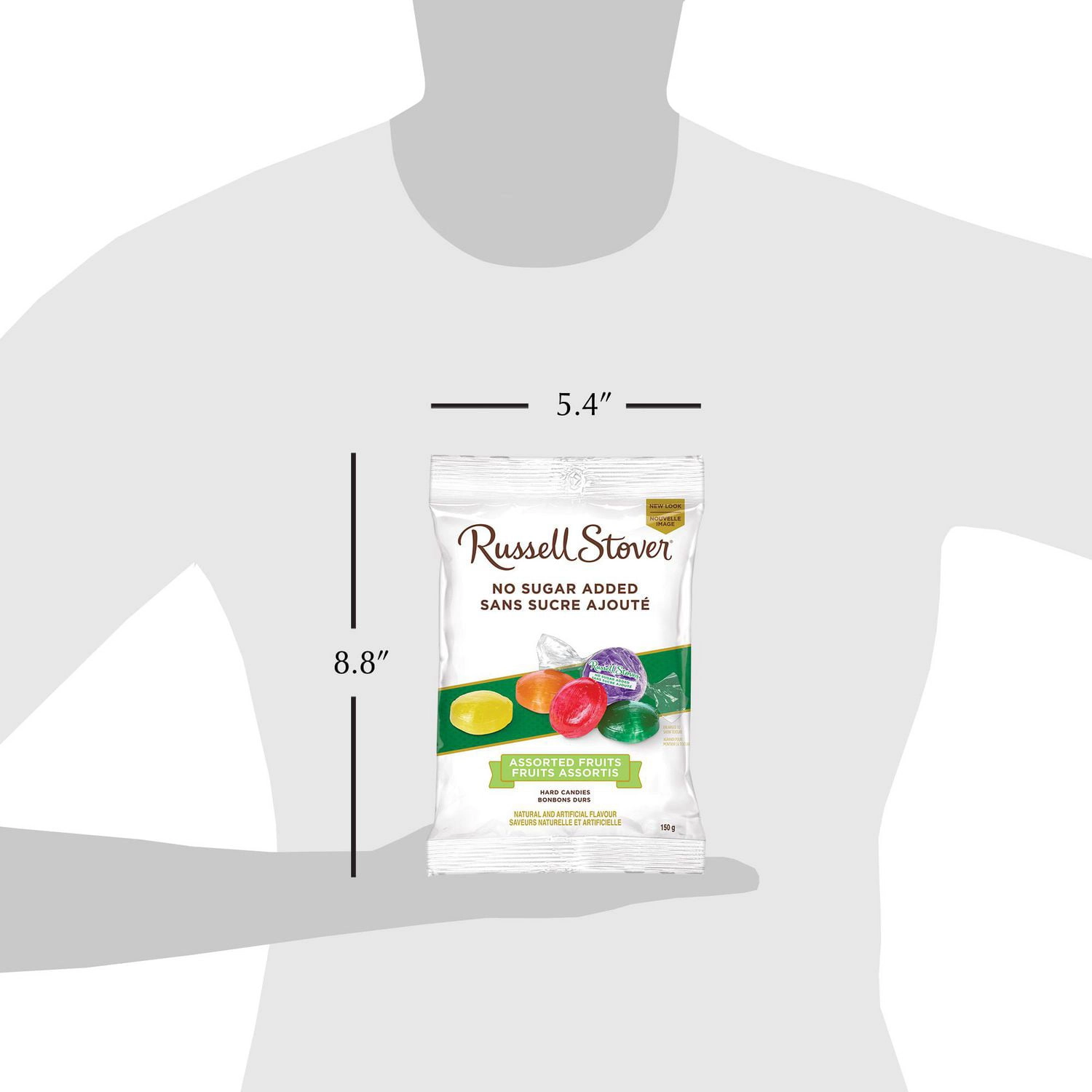 - Bag of no sugar added assorted fruit hard candy, 150g