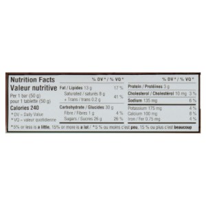 | Ingredients | Sugars (sugar, glucose syrup), Milk ingredients, Modified palm oil, Unsweetened chocolate, Modified vegetable oil, Sea salt, Cocoa butter, Salt, Soy lecithin, Baking soda, Calcium chloride, Natural and artificial flavors. Contains: Milk, Soy. May contain: Peanut, Almond, Cashew, Hazelnut. |