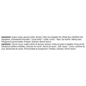| Ingredients | Sugars (Sugar, Glucose Solids, Lactose), Palm And Vegetable Oils, Wheat Flour, Modified Milk Ingredients, Unsweetened Chocolate*, Cocoa Butter*, Coffee, Cocoa*, Yeast, Soy Lecithin, Baking Soda, Polyglycerol Polyricinoleate, Protease, Xylanase, Natural Flavour. *Rainforest Alliance Certified. |