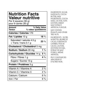 - Hazelnut milk chocolate bar, 100g
