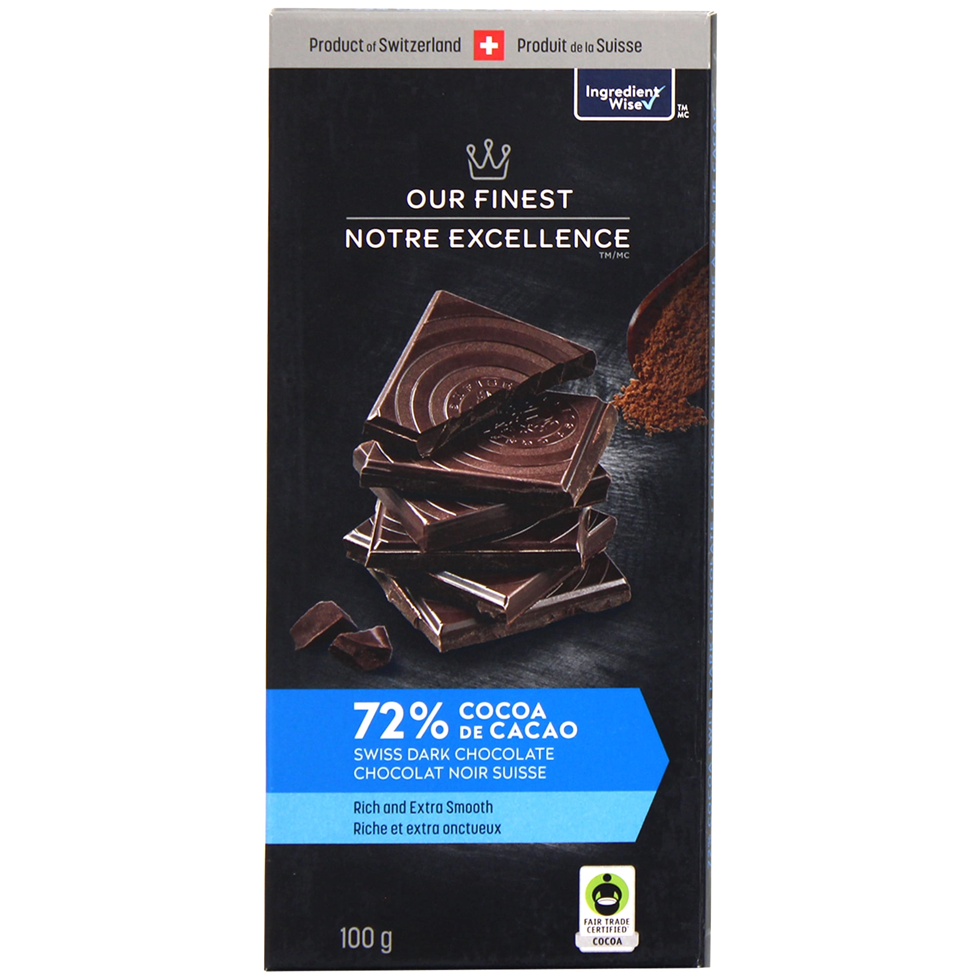Experience the rich and decadent flavor of Our Finest Swiss Dark Chocolate Bar. Made with a premium blend of cocoa beans, this 72% cocoa dark chocolate is exclusively crafted in Switzerland using traditional methods for the ultimate chocolate experience.
