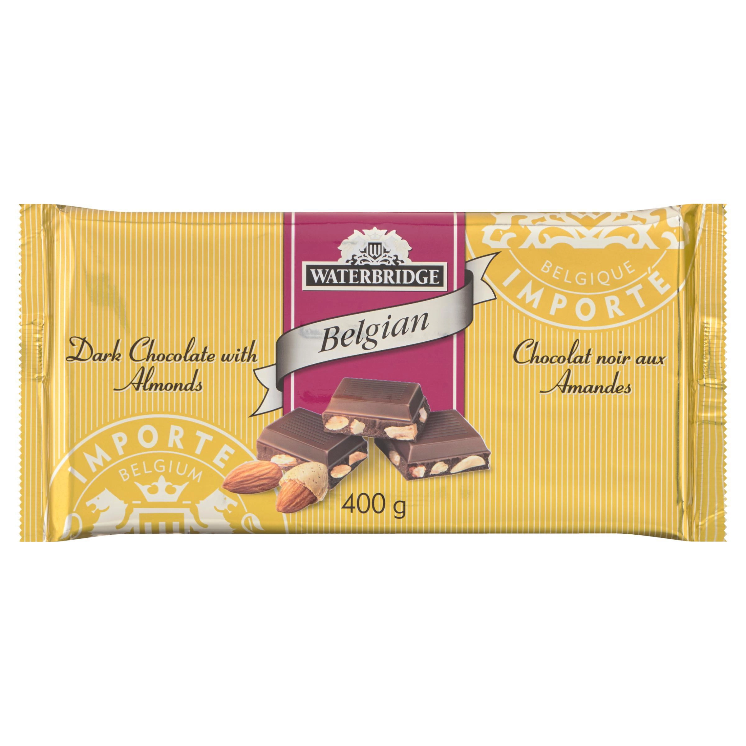 Indulge in the decadent taste of Waterbridge Dark Chocolate with Almonds Bar. Made with rich cocoa mass, sugar, almonds, and cocoa butter, this 400g bar is a delightful treat for chocolate lovers. The combination of dark chocolate and crunchy almonds creates a perfect balance of flavors and textures.